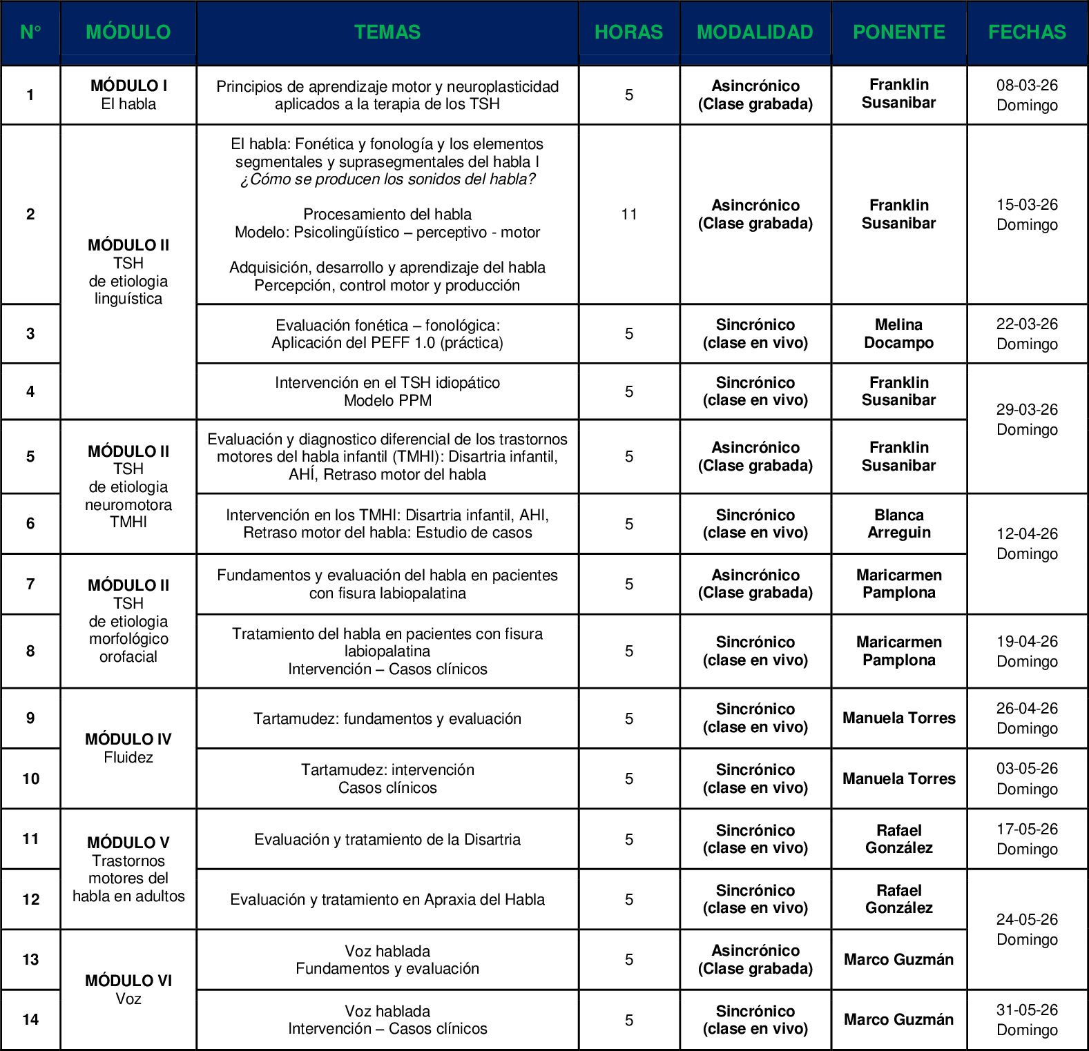 El experto en TSH fue planificado y organizado de manera que, tanto las personas que tienen años de experiencia clínica, como aquellos que recién incursionan en el mundo de la logopedia / fonoaudiología puedan reforzar y aprender a evaluar y tratar los TSH de diferentes etiologías.